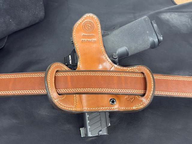Handcrafted in Lone Oak, Texas, this Belt Slide Holster is made for those who demand reliability and rugged style. Designed specifically for Double Stack Staccato and Springfield DS Prodigy models, it offers a secure, low-profile carry without the bulk.