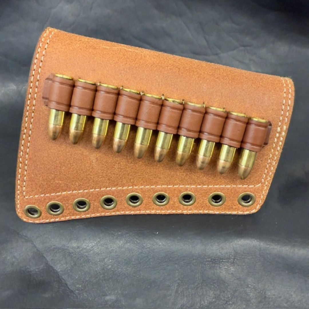 Made for the right-handed rifleman who values grit, tradition, and performance. This handcrafted leather butt cover offers rugged protection and quick access to your .357 Magnum rounds.