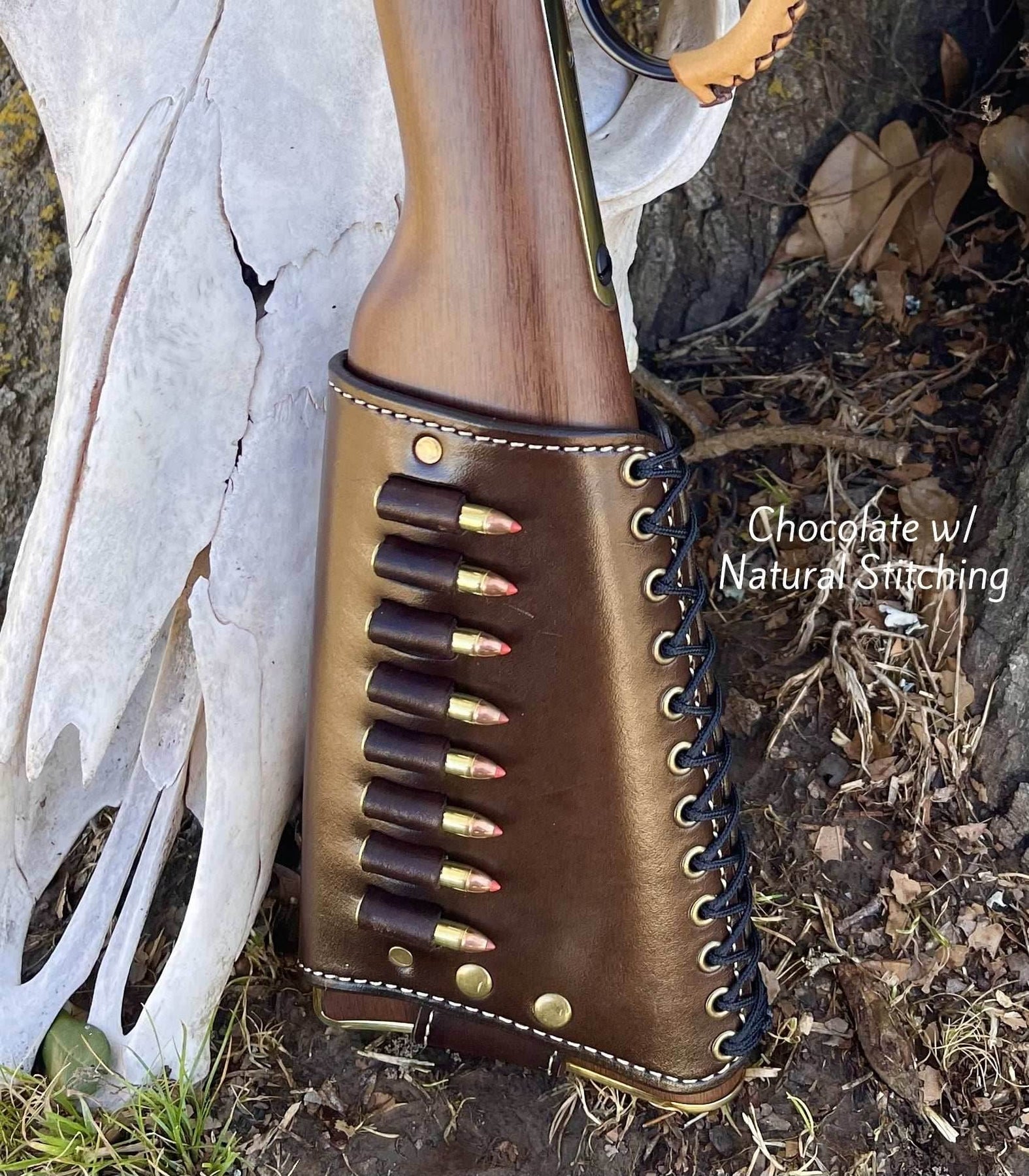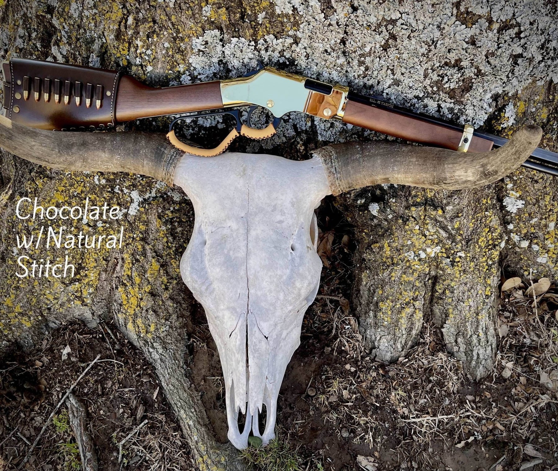 *Ammo Depot* RH Leather Butt-Cover w/Ammo Loops for Henry Frontier Model .22 Mag Chocolate w/Natural