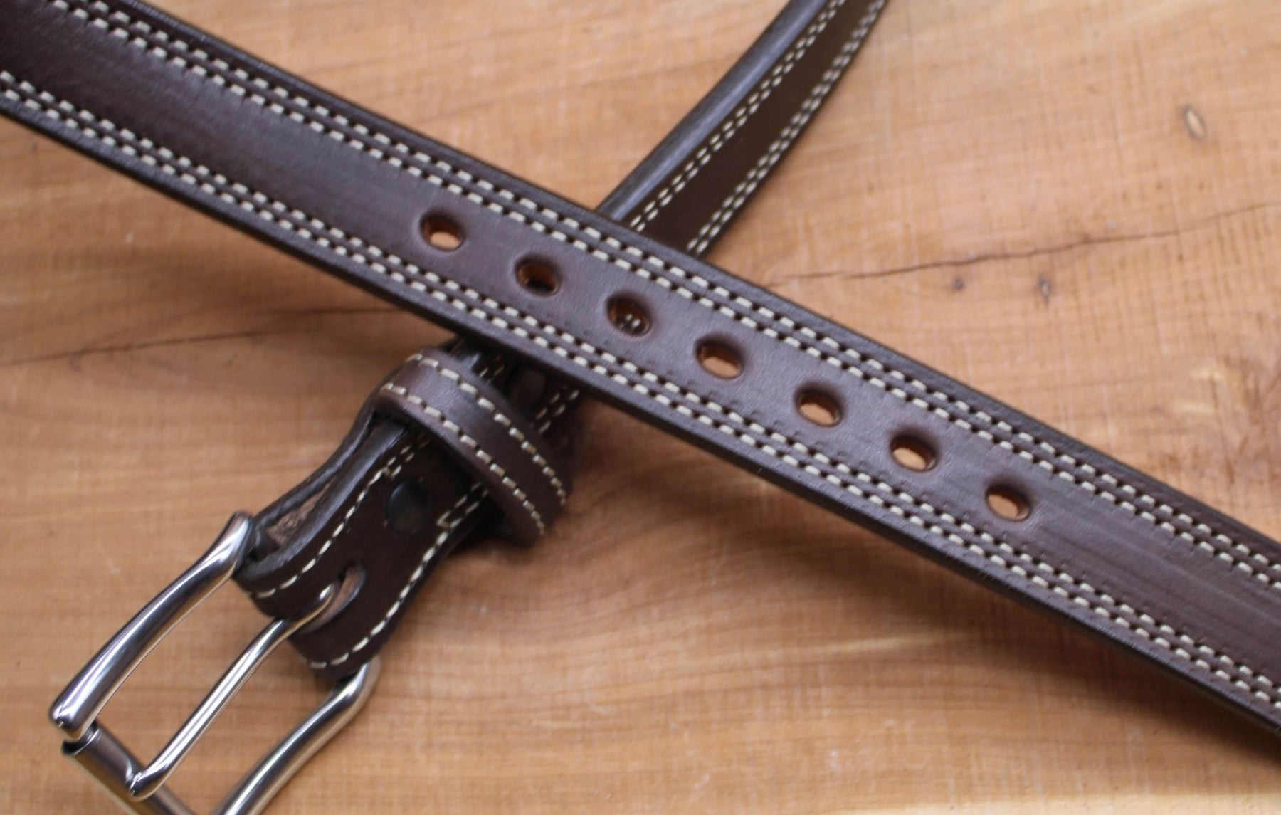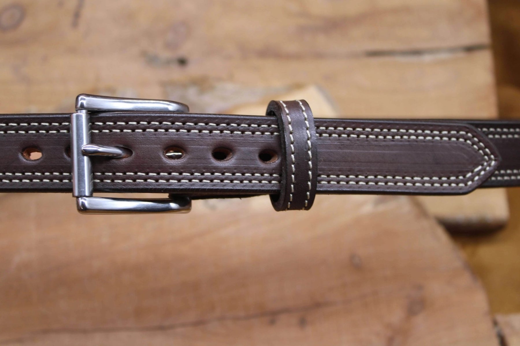 *In Stock* 1.25" Carry Belt .25" Thick Double Stitch Chocolate w/Natural Stitch Size 40