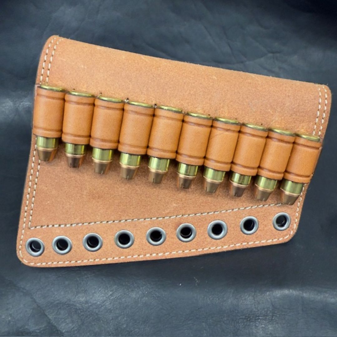 Made for the right-handed rifleman who values grit, tradition, and performance. This handcrafted leather butt cover offers rugged protection and quick access to your .44 Magnum rounds.