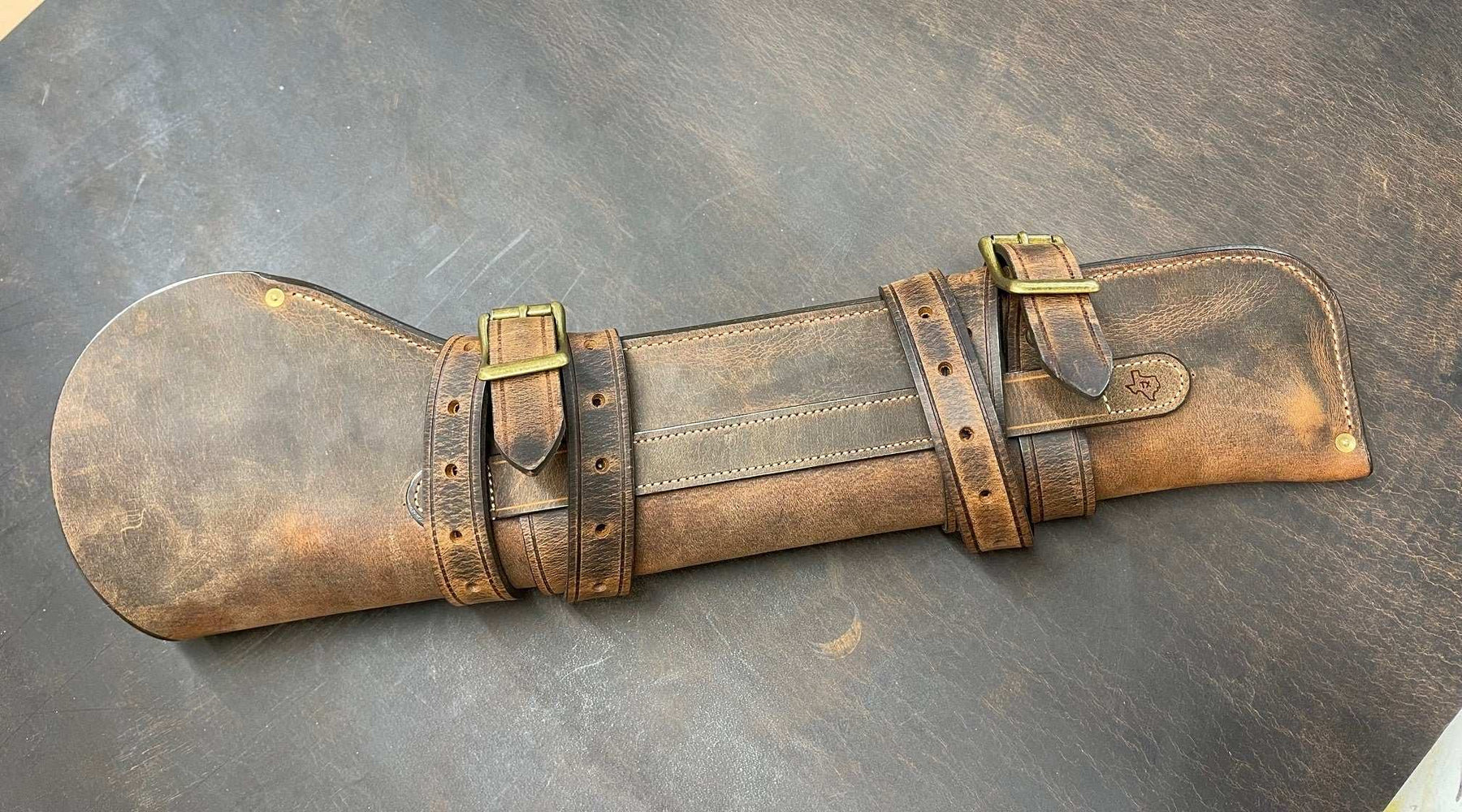 Leather Rifle Scabbard – Weathered Bomber Brown Water Buffalo