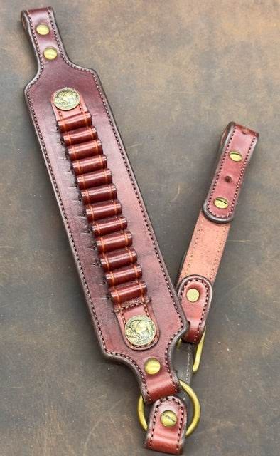 *In Stock* Rifle Sling Henry Axe .410 Mahogany w/Brown & Antique Brass Buffalo Nickel Reproduction Coin Conchos