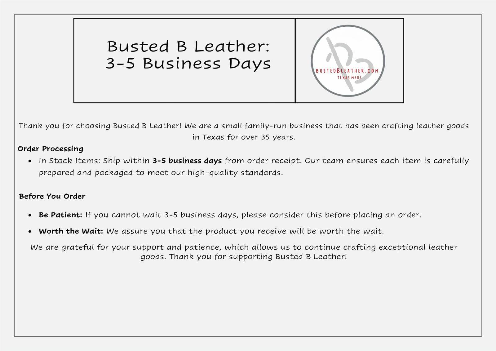 We are not responsible for damage, personal injury, or death due to misuse or negligent use of firearms while using a Busted B Leather made product.