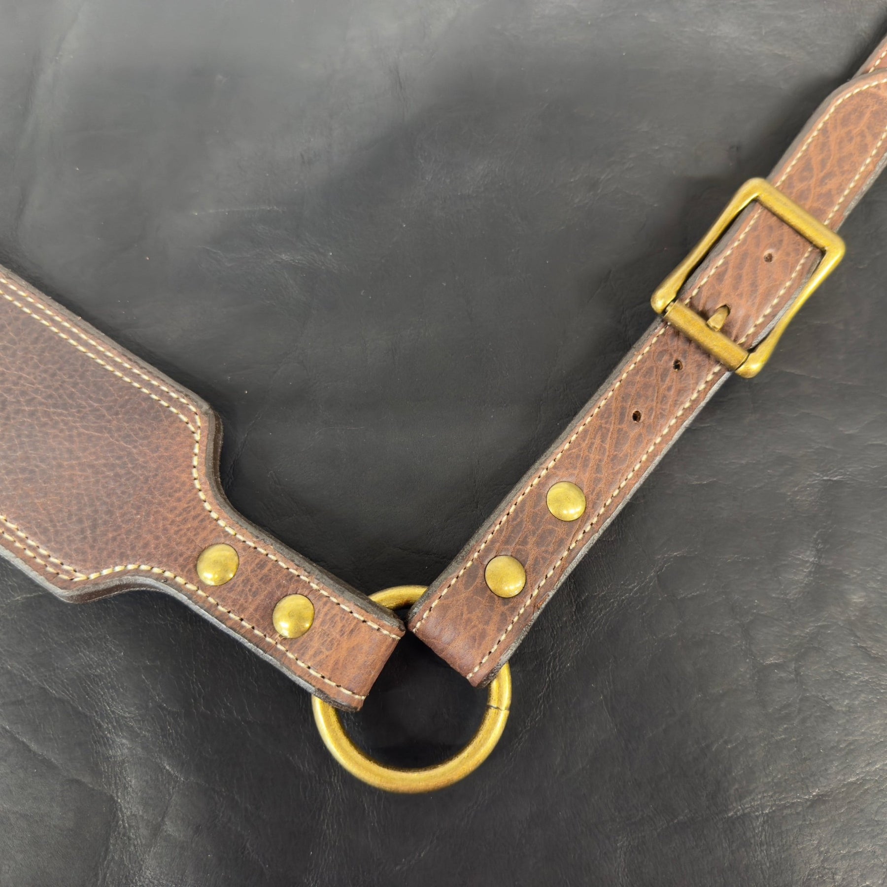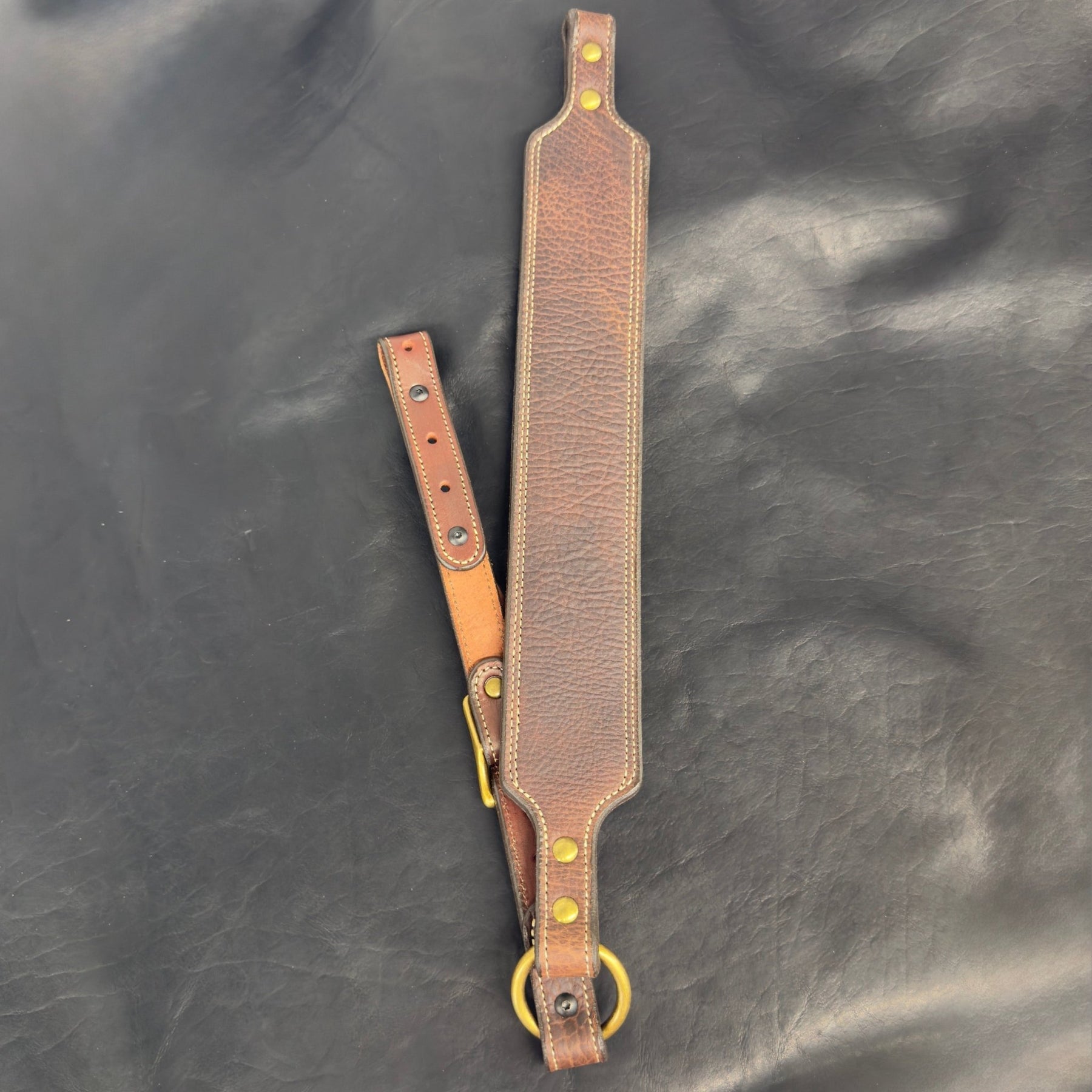 In Stock – Rifle Sling in Brown American Bison Leather with Natural Stitch & Antique Brass Hardware