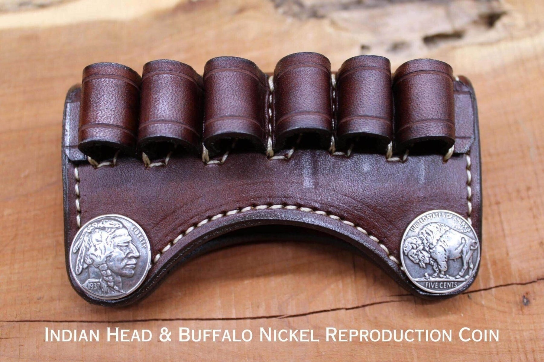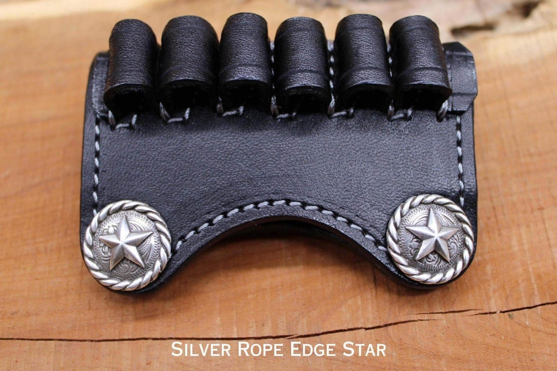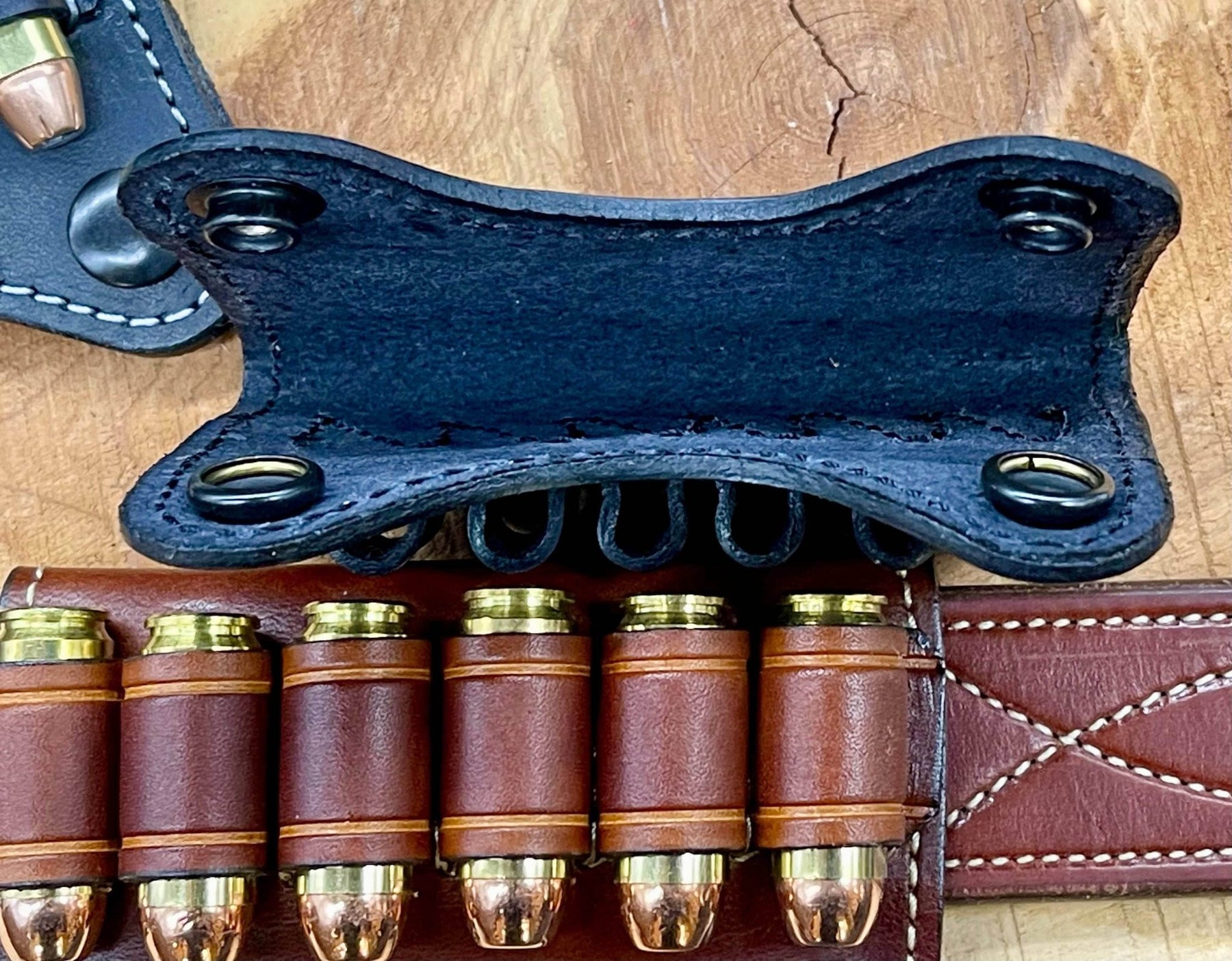 Customization at its Finest: Personalize your ammo slide with your choice of leather and stitch color, reflecting your unique style and preferences. Whether you prefer the rugged appeal of a classic brown or the sleek finish of black, our hand-stitched craftsmanship guarantees durability and elegance.