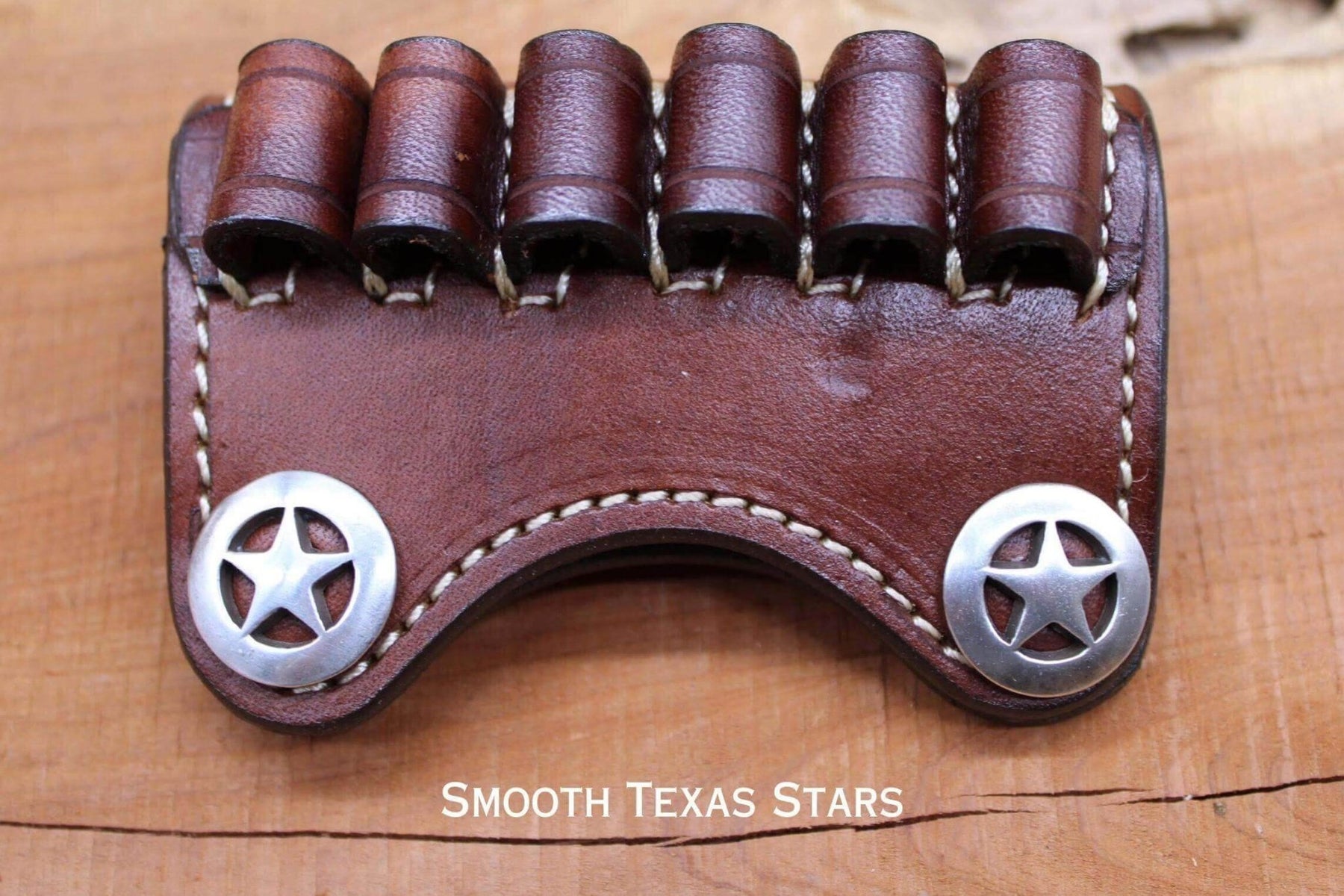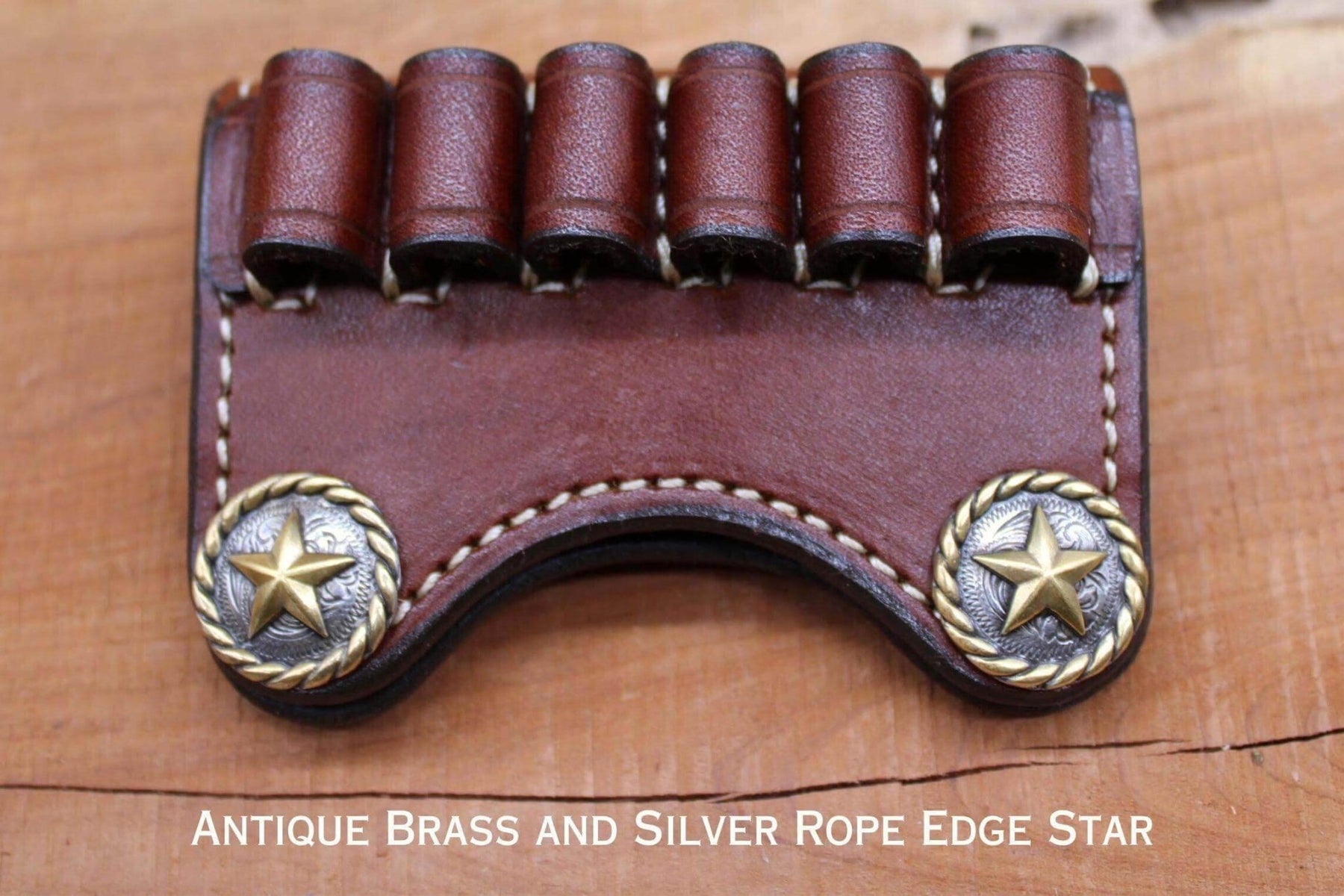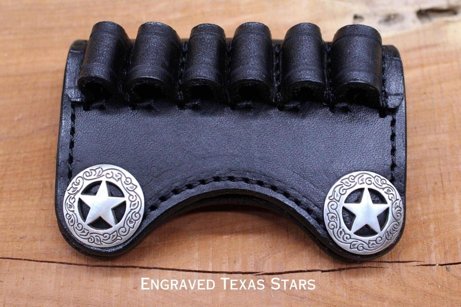 Customization at its Finest: Personalize your ammo slide with your choice of leather and stitch color, reflecting your unique style and preferences. Whether you prefer the rugged appeal of a classic brown or the sleek finish of black, our hand-stitched craftsmanship guarantees durability and elegance.