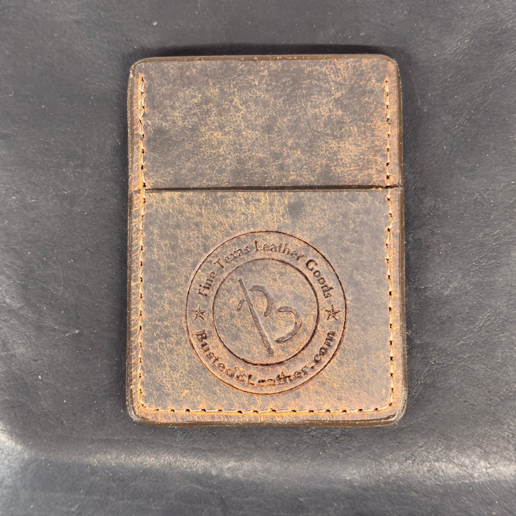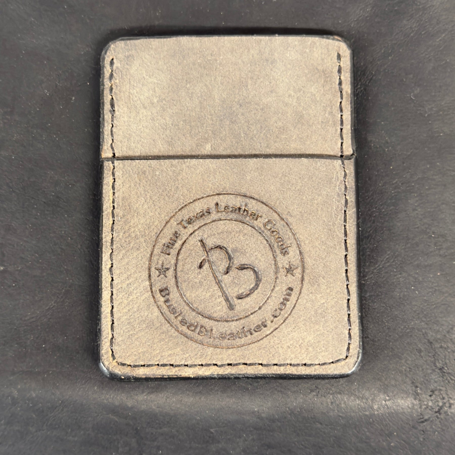 The Busted B Leather logo is subtly embossed on the front corner as a mark of quality craftsmanship. Please note that there are 2 wallets that have the large Busted B Leather Logo (marked clearly in the drop-down menu).