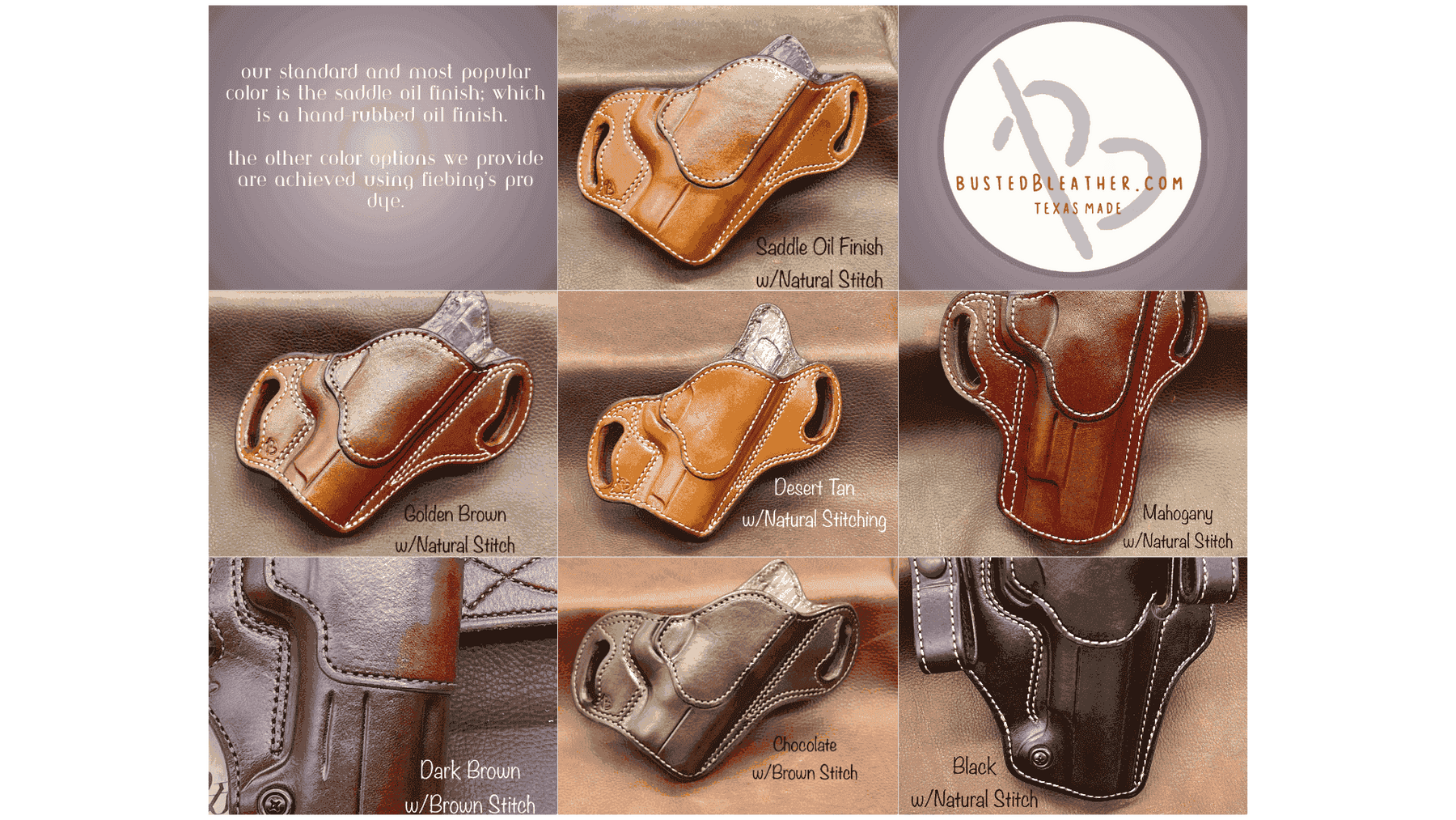 Choose from a variety of leather and stitch color combinations